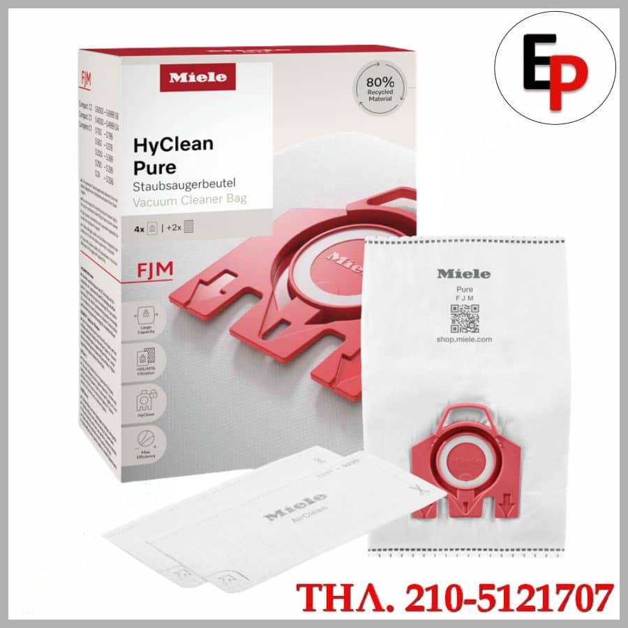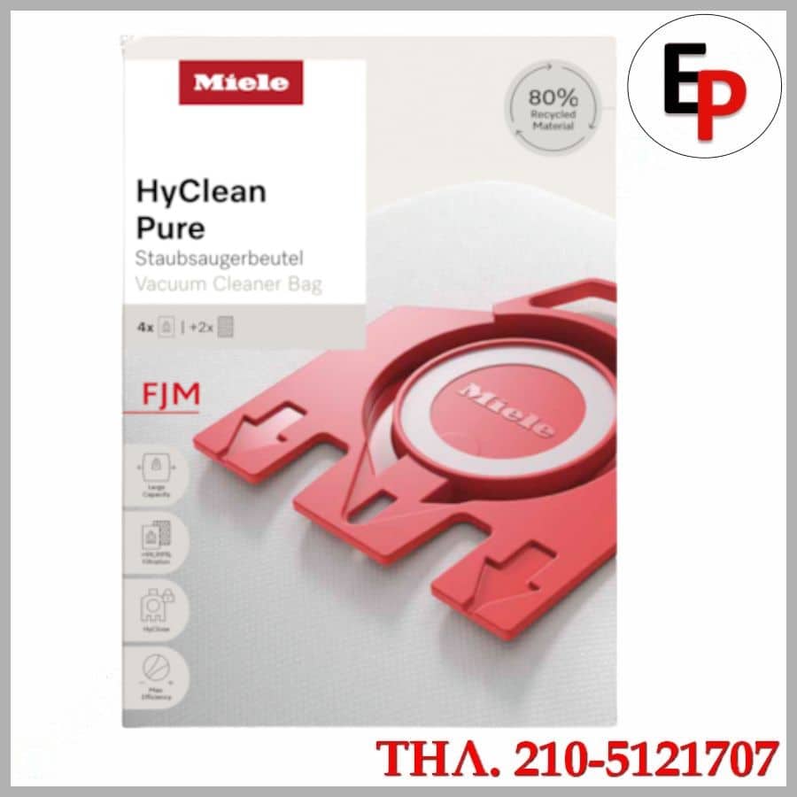 ΟΙ σακούλες Miele FJM HyClean 3D Efficiency Φιλτράρουν περισσότερο από το 99,9% όλων των σωματιδίων σκόνης! Χάρη στο αυτόματο κλείσιμο γίνετε καθαρή αντικατάσταση σακούλας. Έχουν μεγαλύτερη διάρκεια ζωής χάρη τεχνολογία σακούλας σκούπας 3D.