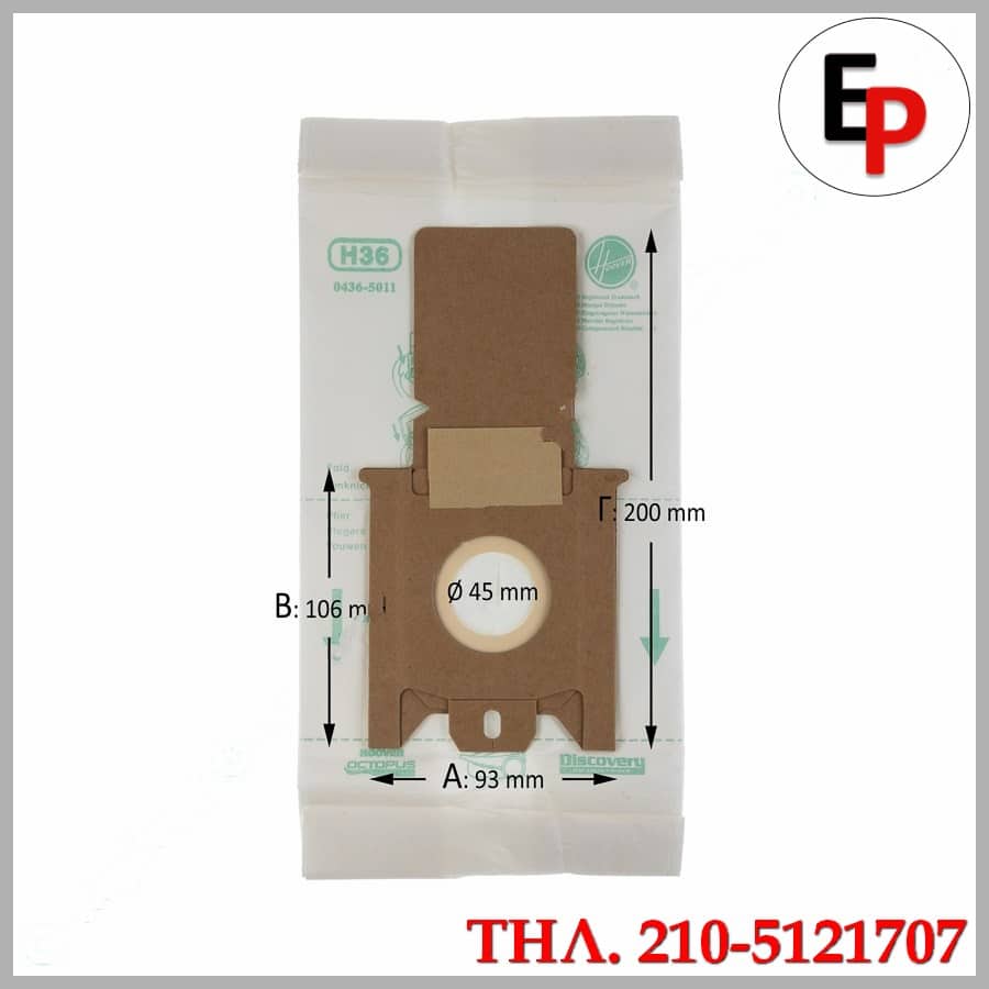 HOOVER ΣΑΚΟΥΛΑ ΣΚΟΥΠΑΣ H36 DISCOVERY ORIGINAL, HOOVER, 90800825R, Σακούλες Ηλεκτρικής Σκούπας Hoover H38, https://easy-parts.gr/, ORIGINAL, ΓΝΗΣΙΑ ΣΑΚΟΥΛΑ
