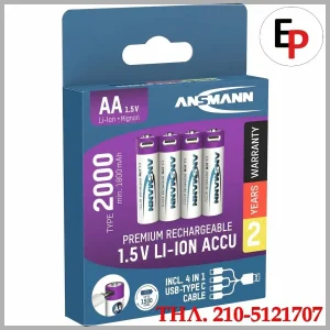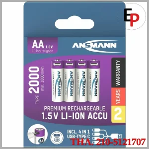 Usb Επαναφορτιζόμενη Μπαταριά AA 4 Τεμάχια 1,5V, 4× MIGNON AA LI-ION AKKU 2000 MAH, 4-FACH USB-C LADEKABEL, type-C charge
